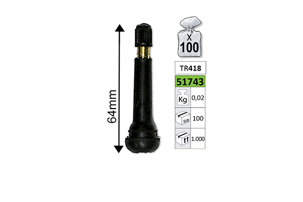 VALVE PENTRU ANVELOPE TR418 64 MM SET 100 BUC JBM